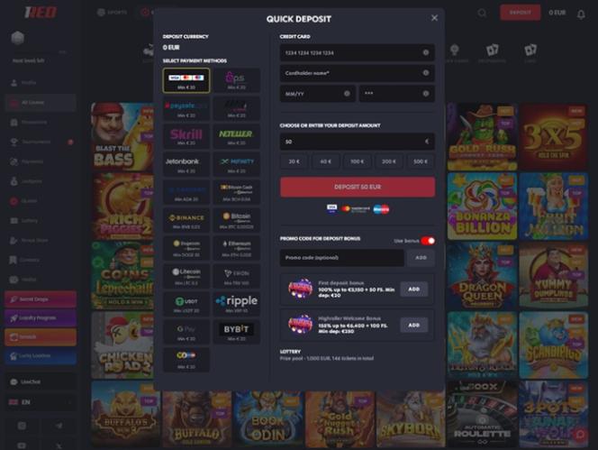 1Red 賭場提供豐富的銀行服務選項。玩家可以使用各種加密錢包,並使用熱門加密貨幣進行交易;而更傳統的賭場玩家則可以選擇知名的電子錢包、直接銀行轉帳、支付卡等多種支付方式。
