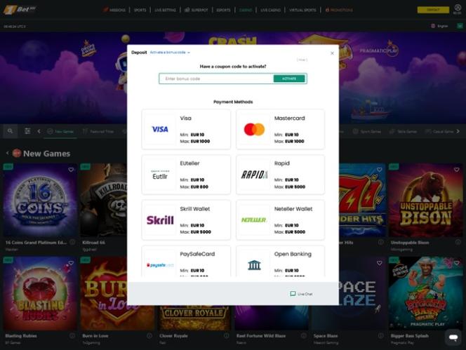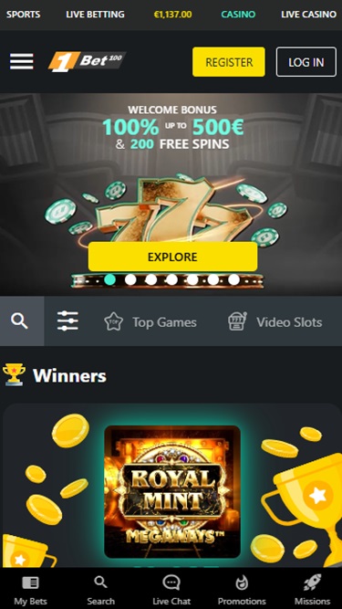 除了賭場遊戲外,1bet.com 還為客戶提供體育博彩服務。