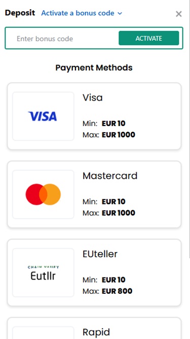 €5,000 (when your balance is at least 10 times larger than the total sum of your deposits) Monthly ; €10,000 (in other cases) Monthly