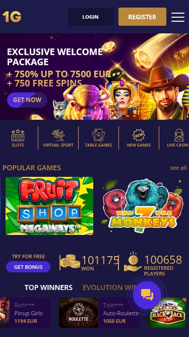 別忘了強調一下,註冊過程只需要花費您一秒鐘的時間,因此很快您就會進入賭場大廳,兌換一筆可觀的歡迎獎金,並在 1GOODbet 賭場進行您的第一次良好投注。