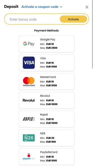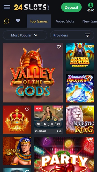 從我們第一次訪問這家線上賭場起,我們就被它令人驚嘆的氛圍和極其井然有序的佈局所吸引。這裡的一切井然有序,用戶友好,網站看起來時尚優雅。玩家可以根據各種參數(包括遊戲提供者和遊戲類型)輕鬆瀏覽可用的遊戲。