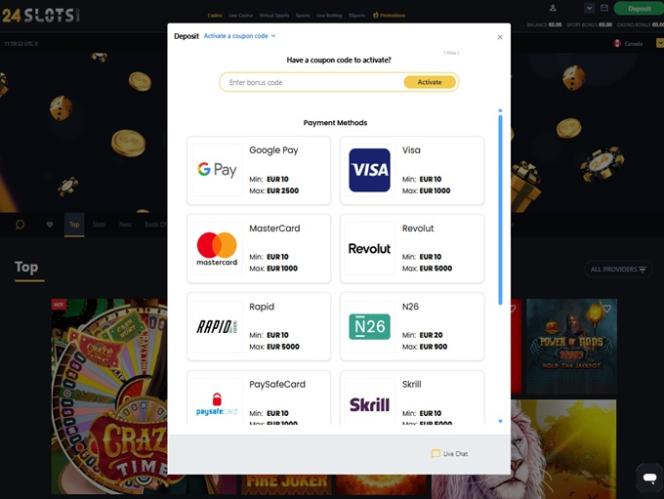 無論您是喜歡在家中的個人電腦遊戲機上玩遊戲,還是選擇在旅途中使用手機和平板電腦等便攜式設備進行遊戲,您都可以流暢無憂地訪問整個遊戲庫。可靠的網路連線和穩定的資料傳輸將確保所有遊戲快速加載,讓您真正享受 24Slots 賭場提供的博彩體驗。