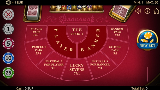 賭場之間因為競爭的緣故, Baccarat百家樂在tie和局通常⽀付9⽐1賠率, 或是Banker莊家的押注⽀付0.96的賠率, 不過Microgaming的賭場提供與 陸上賭場相同的標準規則。