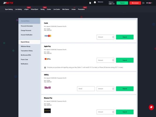 儘管大多數現代線上賭場都設有忠誠度系統,讓玩家可以升級,但 31Bets 卻採取了截然不同的方式來獎勵其最忠實的玩家。玩家達到特定存款金額後,即可聯絡客服申請忠誠度回饋獎勵,該獎勵僅在帳戶餘額低於 1 歐元/美元時發放。