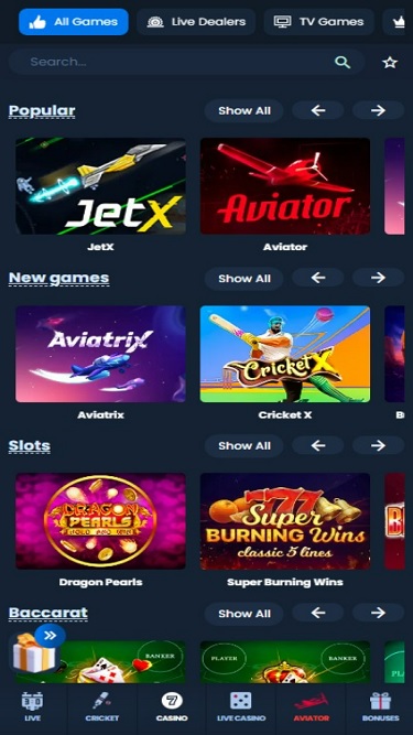 說到遊戲數量,網路老虎機數不勝數,但我們會在評測的專題中專門討論它們。玩家可以暢玩各種桌上遊戲,例如二十一點、輪盤和百家樂。這些遊戲還可以與真人荷官一起玩,帶來更傳統的賭場體驗。