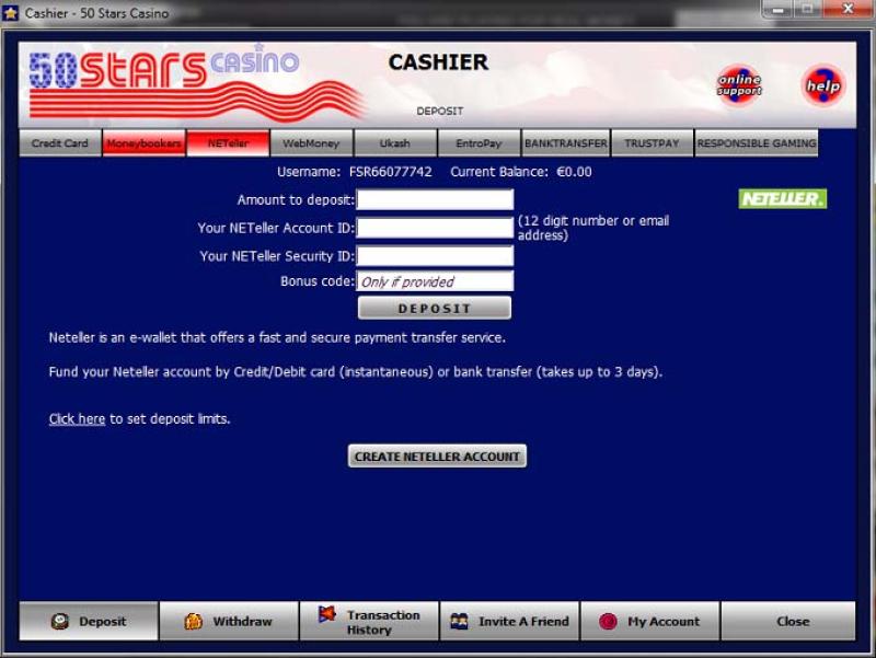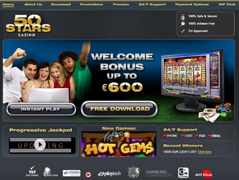 50 Stars Casino 是一個線上遊戲網站,成立於 2005 年。他們以提供先進的賭場系統和令人興奮的遊戲體驗而自豪,這一切都歸功於 Playtech 軟體的幫助。玩家可以透過即時遊戲直接暢玩,也可以花點時間下載免費軟體。該網站提供各種遊戲、各種促銷活動,並透過電話、聊天、傳真和電子郵件提供全天候支援。