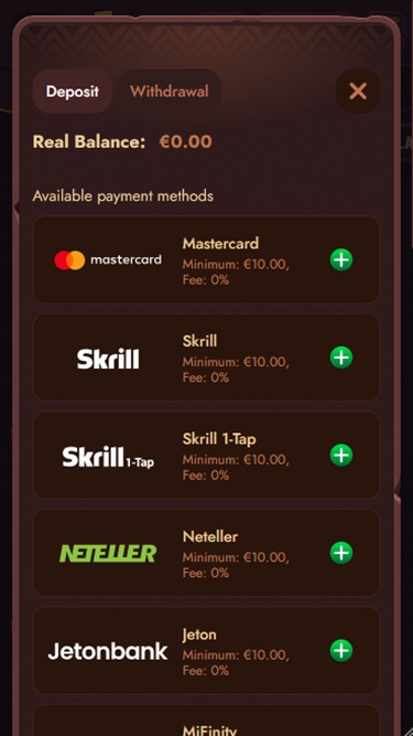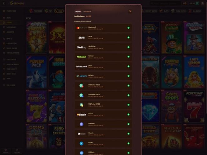 下面您將看到 5Gringos 提供的各種銀行業務選項,包括您可以進行的存款和提款選擇。