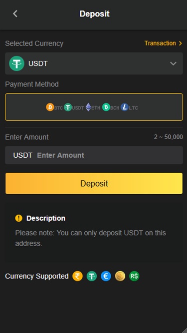 這個博彩平台完全圍繞著使用加密貨幣作為主要銀行業務方式的使用者。玩家可以使用泰達幣、萊特幣、比特幣、比特幣現金和以太幣等加密貨幣。