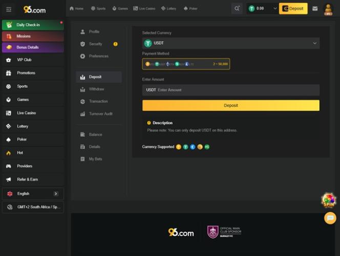 96.com 賭場有一個專門討論負責任博彩的頁面,您可以在其中閱讀更多相關內容。他們還允許玩家自我隔離,這通常用於個人意識到自己的愛好失控時。