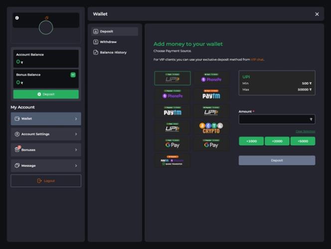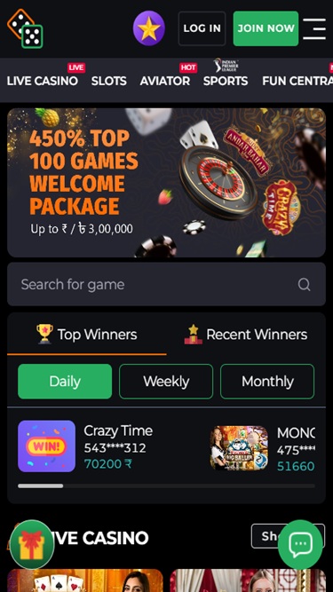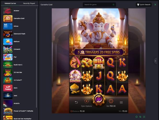 該網站已針對 iOS 和 Android 設備進行了全面優化,行動玩家無需下載單獨的應用程式即可暢玩所有遊戲,因為所有內容均可在行動瀏覽器上原生運行。在語言選項方面,玩家可以使用英語和印地語瀏覽網站。