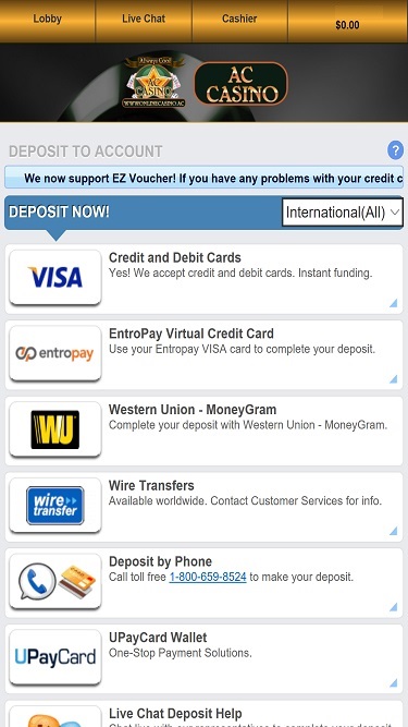 AC Casino 由 BetSoft提供支持,由於賭場採用網頁平台,玩家可以透過網路瀏覽器存取遊戲庫。此外,也為那些想在智慧型手機和平板電腦上玩遊戲的玩家提供行動賭場。其他遊戲
