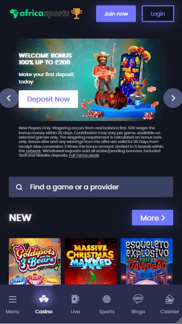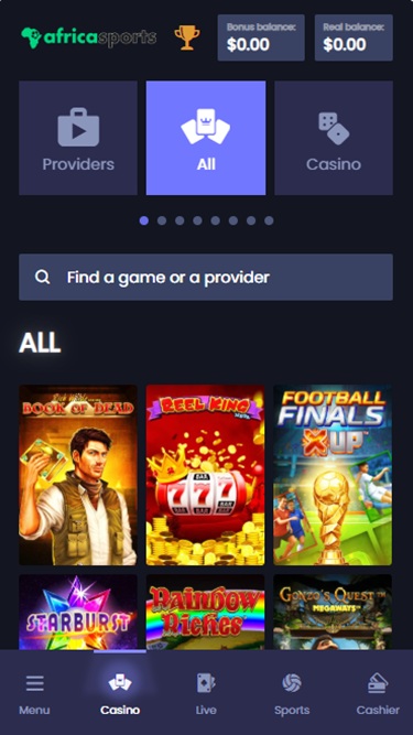 AfricaSports前身為Casinex,是一家線上賭場,主要針對南非和英國玩家,提供豐富的賭場遊戲和體育博彩選擇。該品牌擁有種類繁多的遊戲,包括真錢老虎機、真人荷官遊戲、即時崩潰遊戲和桌上遊戲,以及許多促銷活動和獎金。