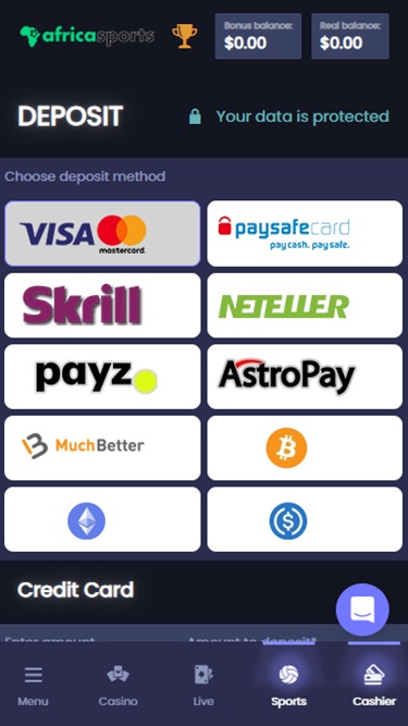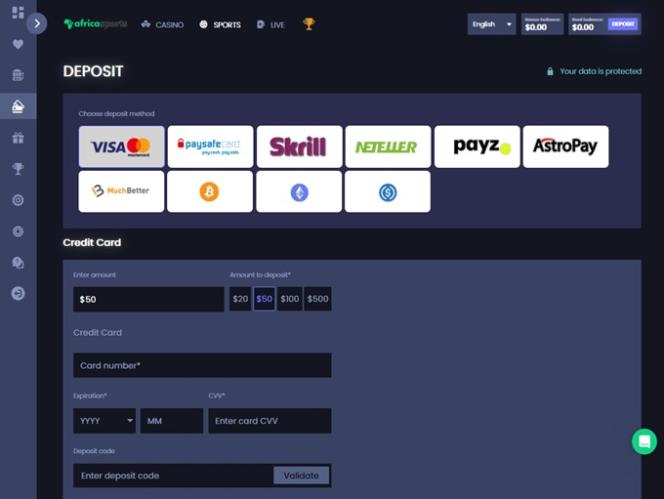 正如您可能已經猜到的,玩家還可以享受豐富的體育博彩選擇。如品牌名稱所示,AfricaSports 提供體育博彩服務,您可以在這裡投注世界各地的各種體育賽事和電子競技比賽,無論是在賽前還是比賽進行中。
