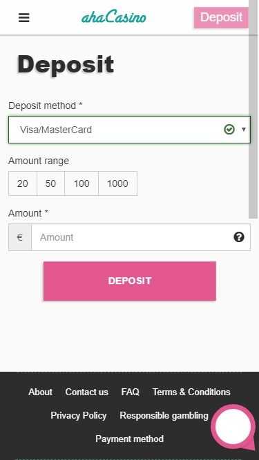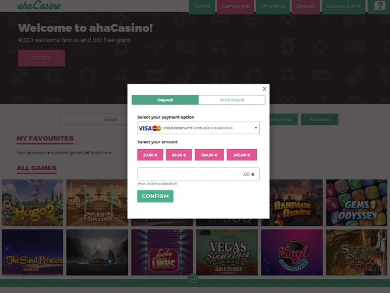 ahaCasino 的銀行系統種類繁多,支援 Visa、MasterCard、Skrill、Neteller 和銀行電匯。標準存款流程可即時到賬,提款則需三至七個工作天。