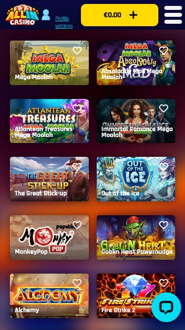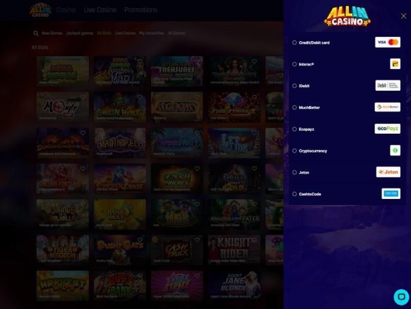 All In Casino 擁有一個極具吸引力的賭博大廳,其中擠滿了由 Evolution Gaming、NetEnt、 Relax Gaming 、Quickspin 等 iGaming 巨頭製作的熱門線上賭場遊戲…