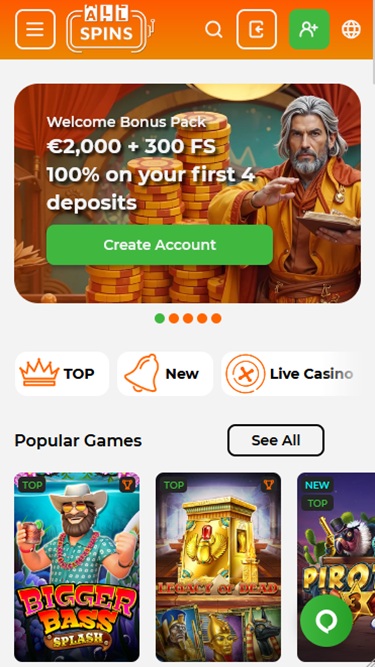 除了獎勵豐厚的VIP俱樂部和遊戲化系統外,AllSpins賭場還提供豐富的促銷和獎金。想要註冊新帳戶的玩家一定會很高興,因為他們可以獲得豐厚的迎新禮包。