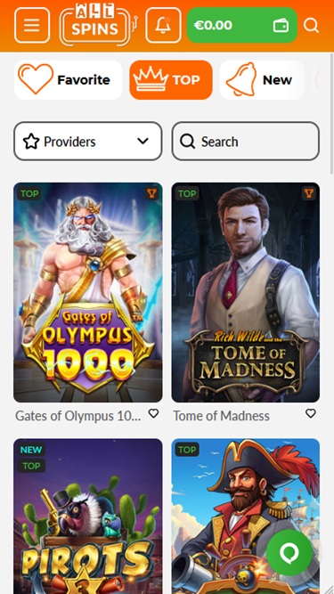 AllSpins 平台擁有一群實力雄厚的軟體開發人員。平台擁有超過 60 個工作室,玩家可以體驗到許多獨特的產品,這些產品提供豐富的機制和功能。平台提供超過 9000 款獨特的遊戲,令人驚嘆!