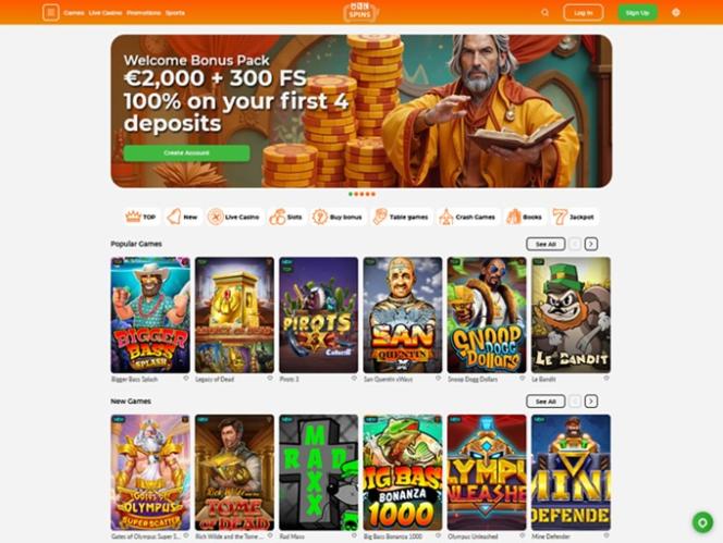 打開網站後,我們首先看到的是主頁,它讓我們可以立即存款並開始遊戲,同時也提供了選擇入手哪個迎新禮包的功能。主頁還可以讓我們瀏覽遊戲類別,查看最受歡迎的遊戲。