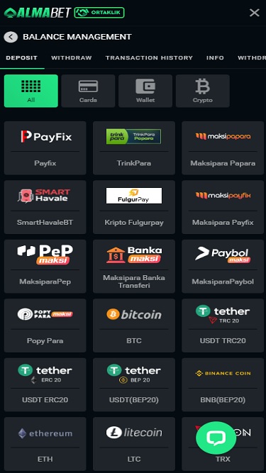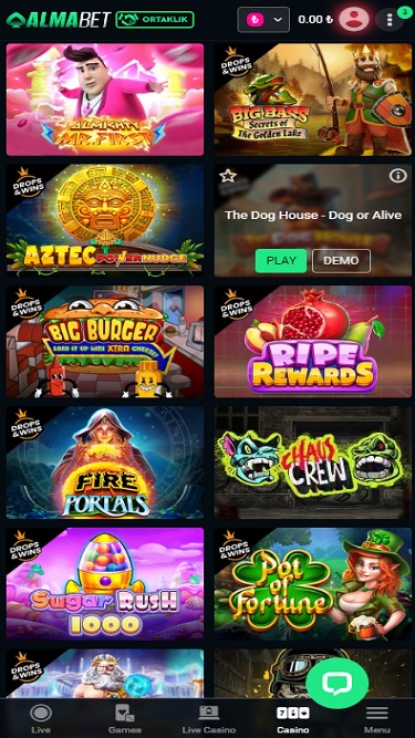 Almabet Casino 的介面非常簡潔,玩家可以快速找到自己喜歡的遊戲。遊戲庫非常龐大,涵蓋了骰子、基諾、Crash 等熱門加密貨幣遊戲,以及彩票和其他引人入勝的博彩內容。