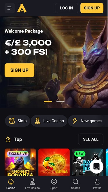 Amonbet Casino 是一個現代化的線上賭博網站,接受來自荷蘭、英國、德國、義大利和西班牙的玩家,提供豐富的真錢遊戲選擇,包括線上老虎機、真人荷官遊戲、桌上遊戲和即時崩潰遊戲。賭場提供全面的促銷計劃,包括眾多獎金以及各種活動和福利,讓您盡情娛樂。