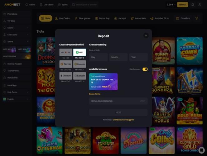 為了方便您在賭場帳戶中存取資金,Amonbet Casino 提供多種銀行服務,包括Visa 、 Mastercard 、銀行電匯和SOFORT Banking 。此外,玩家還可以使用比特幣、狗狗幣、以太幣、萊特幣和泰達幣等加密貨幣來管理資金。