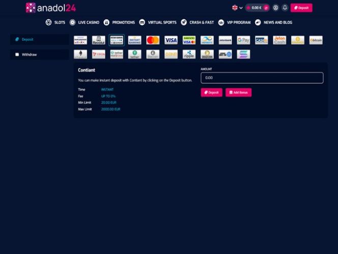 雖然您可能無法在加入博彩網站後立即參與會員計劃,但 Anadol24 已為新老玩家準備了豐厚的促銷計劃。首先,每個新帳戶都有資格領取專為新手玩家設計的豐厚迎新禮包。