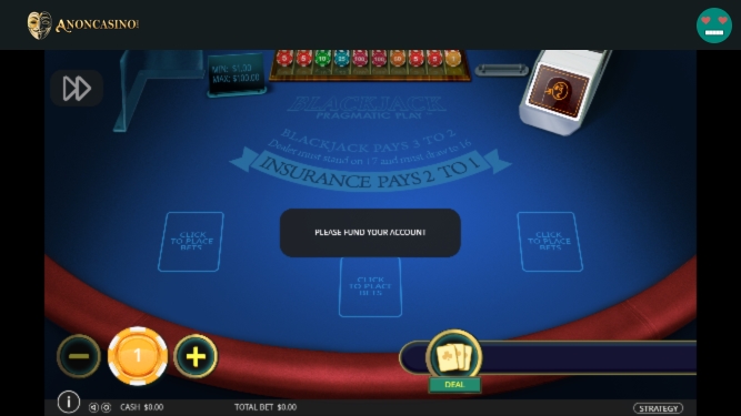 AnonCasino Blackjack (Real Time Gaming)展開