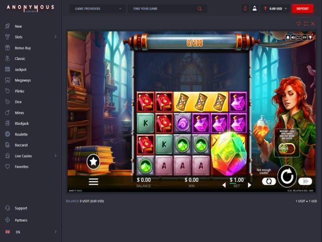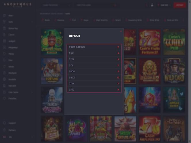 Anonymous 是一家僅接受加密貨幣且無需驗證的賭場,正如您所料,註冊流程再簡單不過了。要成為賭場會員,您需要花一點時間填寫您的電子郵件地址並設定密碼。當您進入玩家控制面板時,您會發現這裡的操作也非常簡單,我們相信您會輕鬆找到自己的路。