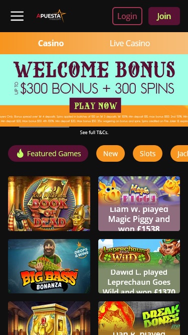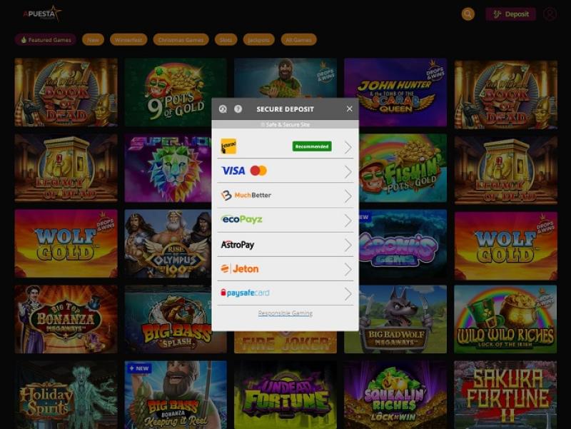 Apuestamos Casino 由 Microgaming, Net Entertainment, BetSoft, Amatic Industries, Barcrest, Big Time Gaming, ELK Studios, Evolution Gaming, iSoftBet, lightningboxgames, Play'n GO, playson, Quickspin, Rabcat, Thunderkick, Wazdan, Realistic Games, Booming Games, Stakelogic, Pragmatic Play, Nolimit City, Red Tiger Gaming, Red Rake Gaming, Skillzzgaming, Fantasma Games, SYNOT Games, Sigma Gaming, Skywind, Triple Edge Studios, Stormcraft Studios, Switch Studios, Electric Elephant Games, All41 Studios, Gameburger Studios, Pulse 8 Studios, Neon Valley Studios, Real Dealer Studios, On Air Entertainment, Games Global, Wizard Games, 2by2 Gaming, Ainsworth, NeoGames, NextGen, Pariplay, Tom Horn Gaming, Inspired Gaming, SG Interactive, Gamomat, Reel Time Gaming, Bally Wulff, Iron Dog Studio, Old Skool Studios, Foxium, Just For The Win, Slingshot Studios, Fortune Factory Studios, High 5 Games and Alchemy Gaming提供支持,網站的遊戲透過網頁平台提供,可透過您常用的瀏覽器載入。該網站介面美觀,易於瀏覽,並內建了行動相容性。