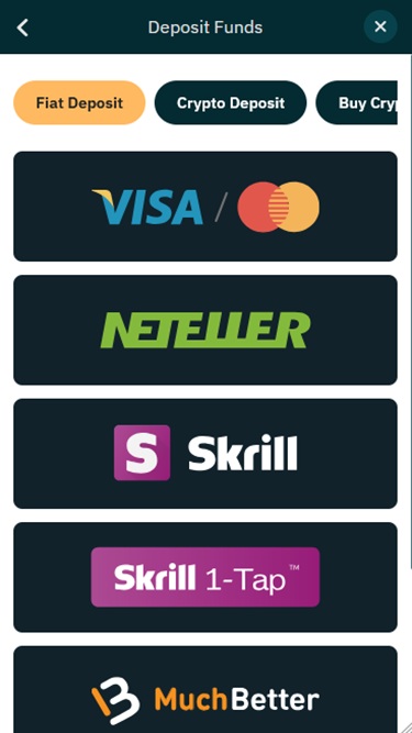 該賭博品牌接受比特幣作為支付方式、流行的電子錢包選項、支付卡和標準電匯。