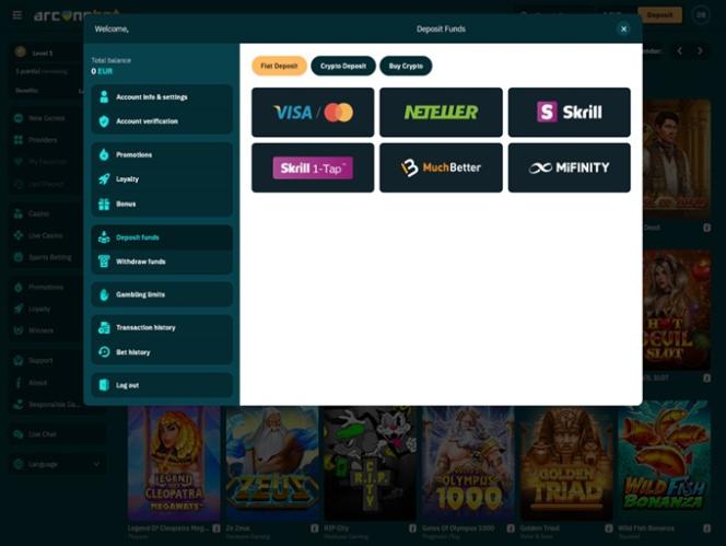 Banking銀⾏業務選項 的 arcanebet Casino