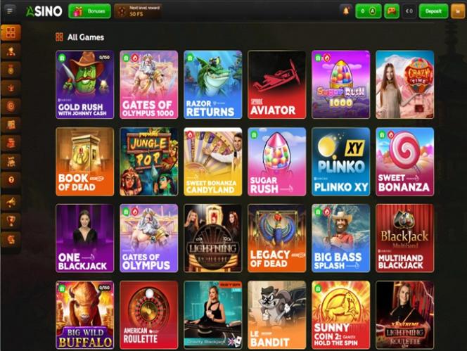 該運營商與眾多軟體開發人員合作,儘管這並不總是品牌知名度或運營商質量的指標,但Asino憑藉其以玩家為中心的理念和豐富且精心挑選的遊戲庫贏得了眾多玩家的青睞。以下是一些推薦的賭場和真人荷官遊戲。