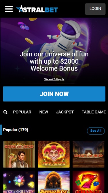 AstralBet 賭場由 Microgaming, Net Entertainment, Playtech, BetSoft, Evolution Gaming, iSoftBet, Play'n GO, Yggdrasil, Pragmatic Play, Red Tiger Gaming, SpinPlay Games, Games Global, Authentic Gaming and Half Pixel Studios提供支持,其遊戲透過基於網頁的即時遊戲平台提供,可直接透過您的網頁瀏覽器載入遊戲。該賭場還支援行動端遊戲,這意味著您可以在任何有數據連接的地方,使用智慧型手機或平板電腦玩遊戲。
