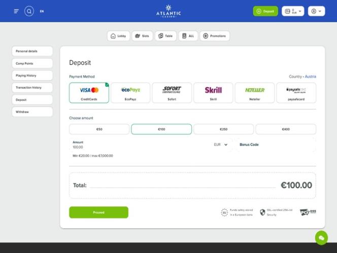 Banking銀⾏業務選項 的 Atlantic Casino Club