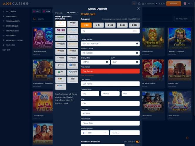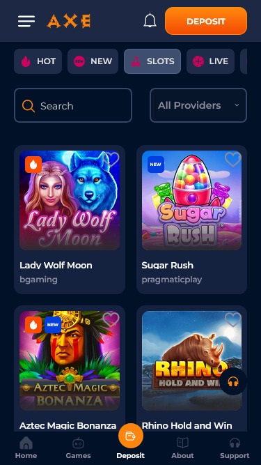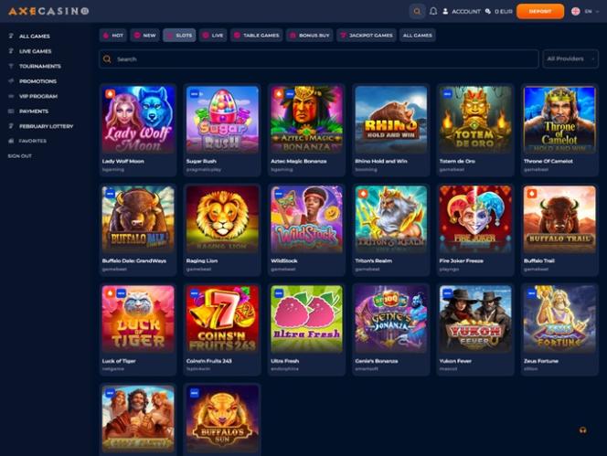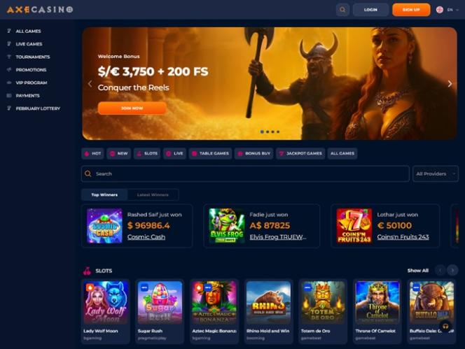Axe 是一個針對所有可用裝置進行最佳化的線上遊戲網站,並提供可下載版本。註冊流程快速簡單,玩家可以立即開始遊戲,體驗賭場豐富的遊戲庫。
