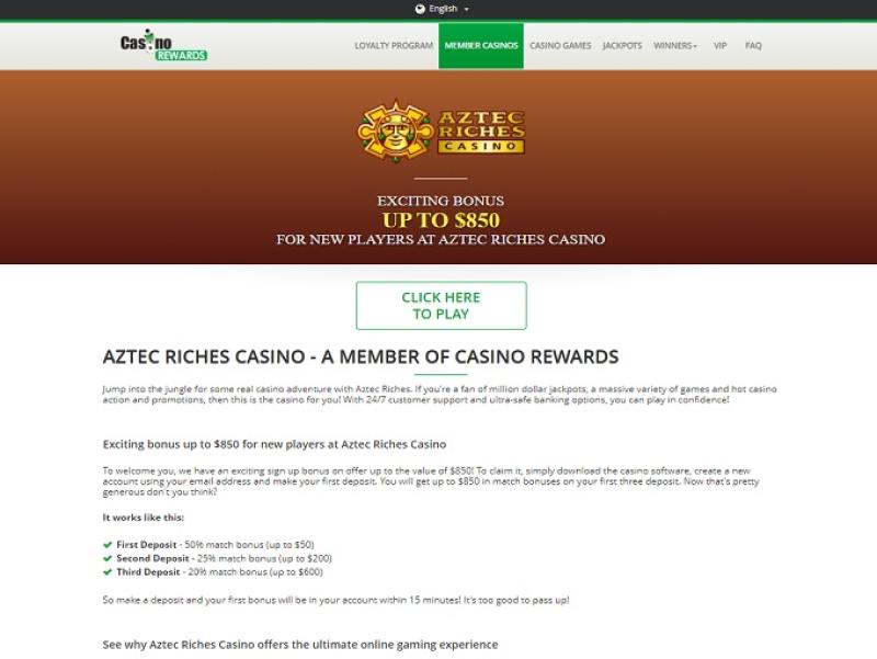 Aztec Riches 是一家線上賭場,在過去幾年中累積了一批可靠的玩家。該賭場由 Casino Rewards 擁有,Casino Rewards 旗下還經營其他幾家線上博彩網站,例如 Players Palace 和 UK Club Casino。這家賭場普遍口碑良好,玩家們稱讚 Aztec Riches 擁有龐大的遊戲庫和卓越的客服支持,但也批評其對非累積獎金的提現限制。賭場資訊