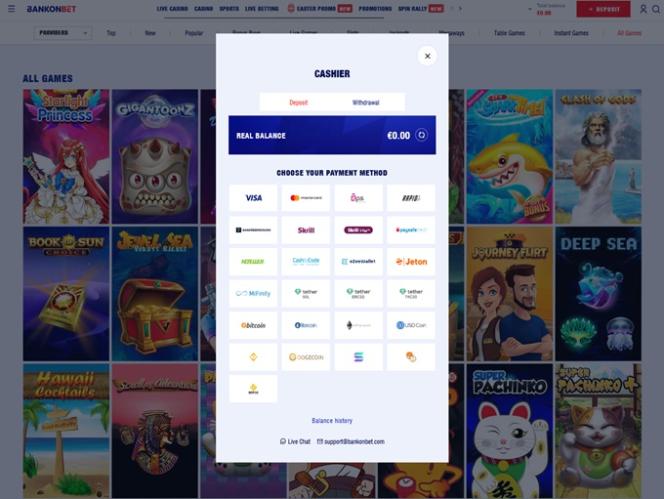 至於可用的付款方式,傳統選項包括Visa 、 Mastercard 、 Jeton 、 Skrill 、 Neteller 、 Paysafecard 、 AstroPay 、 Neosurf 、 Payz 、 MiFinity等熱門選擇。
