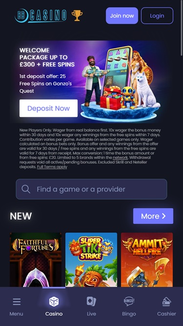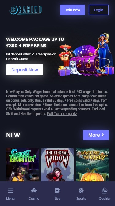 BB 賭場為新玩家提供豐厚的獎金套餐,適用於賭場前三次存款。
