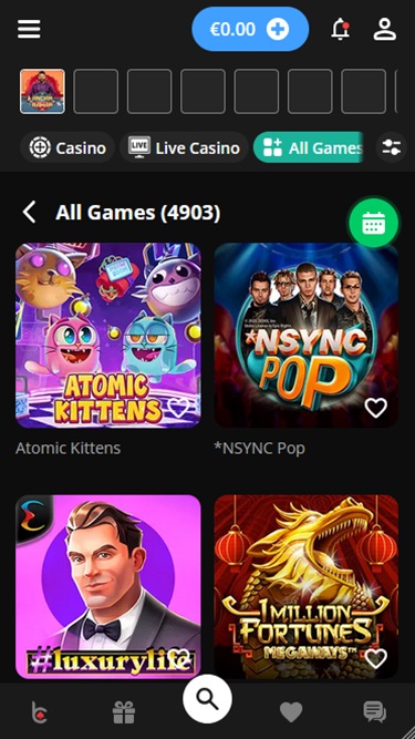 bCasino 由 Microgaming, Net Entertainment, BetSoft, 1x2gaming, Big Time Gaming, Evolution Gaming, Ezugi, Habanero Systems, Play'n GO, playson, Endorphina, Wazdan, Booming Games, Pragmatic Play, Nolimit City, Red Tiger Gaming, Spinomenal, Fugaso, Revolver Gaming, Platipus Gaming, Skywind, Triple Edge Studios, BGAMING, Fazi, Evoplay, Stormcraft Studios, Switch Studios, All41 Studios, Gameburger Studios, Pulse 8 Studios, Neon Valley Studios, Swintt, SpinPlay Games, Real Dealer Studios, On Air Entertainment, Buck Stakes Entertainment, Games Global, Blueprint Gaming, Gamomat, Reel Time Gaming, Iron Dog Studio, Old Skool Studios, Foxium, Just For The Win, Wild Streak Gaming, Slingshot Studios, Fortune Factory Studios, RubyPlay, Alchemy Gaming, Black Pudding Games, Snowborn Games, Half Pixel Studios, Peter And Sons, Aurum Signature Studios, Lucksome Gaming, Area Vegas, Leap Gaming, Wishbone Games, Spribe, Circular Arrow, Gaming Corps, HammerTime Games, INO Games, Nailed It! Games, Neko Games, Reel Kingdom and ICONIC21提供支持,其遊戲透過網頁平台提供,可透過您的網頁瀏覽器載入。網站設計精良,支援行動裝置遊戲,讓您在手機或平板電腦上暢玩老虎機。