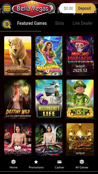Bella Vegas 賭場由 BetSoft, Evolution Gaming, Rival, Saucify and Genii提供支持,這使其擁有一系列獨特的遊戲,您可以透過下載軟體或即時遊戲平台(允許您透過網頁瀏覽器進行遊戲)暢玩。此外,也為希望在智慧型手機或平板電腦上玩遊戲的玩家提供行動網站。