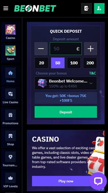您可以在賭場商店將賺取的金幣兌換成獎金和額外旋轉次數,此外,您還可以參加 BeOnBet 的精彩錦標賽。但這只是促銷活動的一部分。