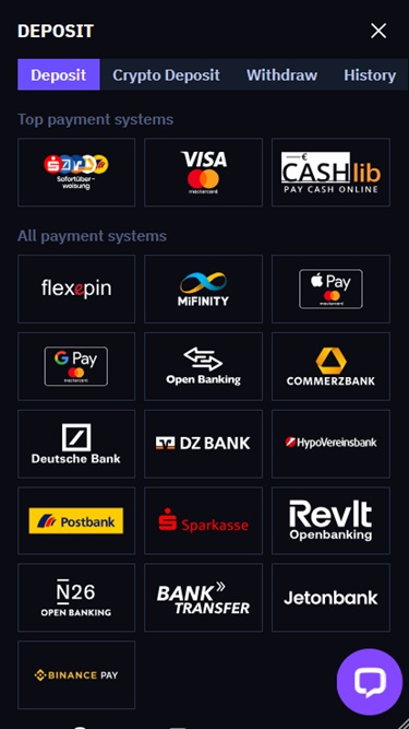 銀行業務選項多種多樣,我們相信加密玩家和更傳統的玩家都會感到滿意,因為選擇眾多,賭徒可以依靠銀行電匯、流行的支付卡和其他線上支付系統,以及流行的數位貨幣和加密支付選項。