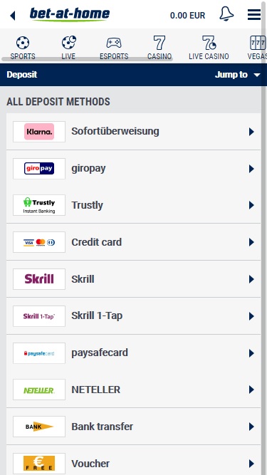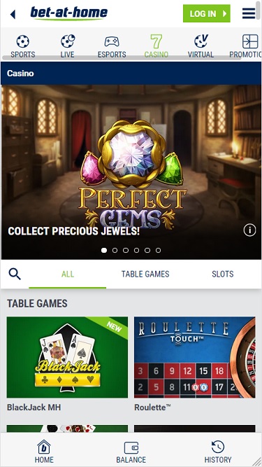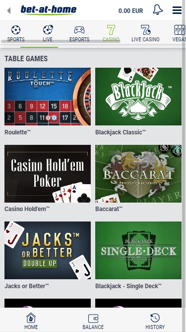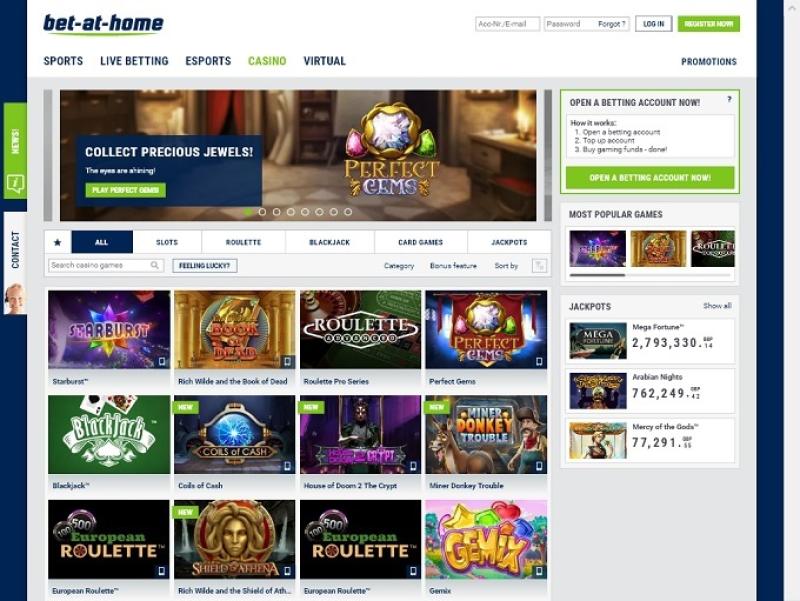 Bet-at-home 賭場由 Microgaming, Net Entertainment, Big Time Gaming, Evolution Gaming, playson, Wazdan, Booming Games, Red Tiger Gaming, SYNOT Games, Games Global, Blueprint Gaming, EveryMatrix, NextGen, Foxium and Just For The Win提供支持,其賭場遊戲透過網頁平台提供,玩家可直接透過網頁瀏覽器進行遊戲。行動網站也支援透過智慧型手機和平板電腦存取。