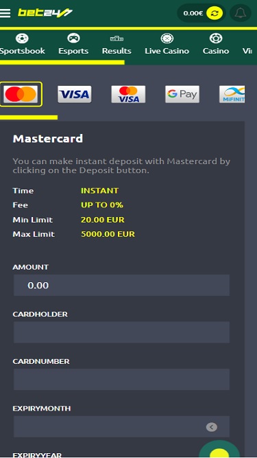 E-wallets/Credit Cards/Bank Wire Transfer: €1,000 per transaction; Cryptocurrency: €2,000 per transaction;