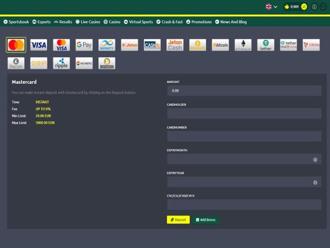 賭場出納員支援多種支付方式,例如直接銀行電匯、知名存款和信用卡支付卡、廣泛使用的電子錢包(如 Skrill 和 Neteller)以及其他線上支付系統。