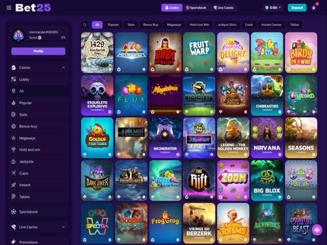 無論您是哪種類型的玩家,Bet25 都能輕鬆滿足您的所有遊戲需求。該品牌擁有種類繁多的精彩賭場遊戲,其團隊已獲得超過 90 家軟體供應商的授權,其中大多數供應商都被認為是業內頂尖的。