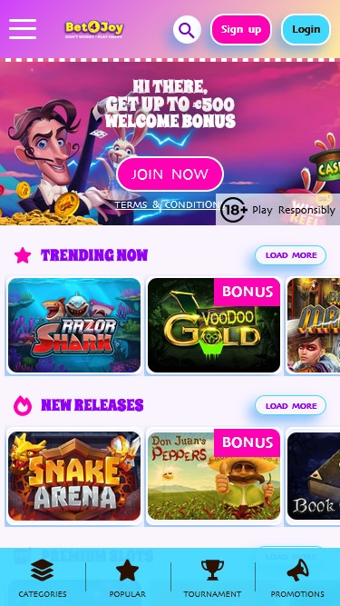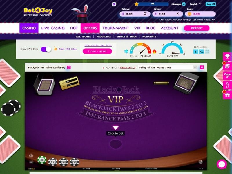 Bet4Joy 賭場是一個線上博彩網站,於 2014 年首次上線。賭場使用 Playtech 遊戲,並提供一系列可在桌上型電腦和行動裝置上暢玩的遊戲。自從上線以來,玩家一直抱怨賭場提款流程冗長,有時甚至需要一周時間。賭場資訊