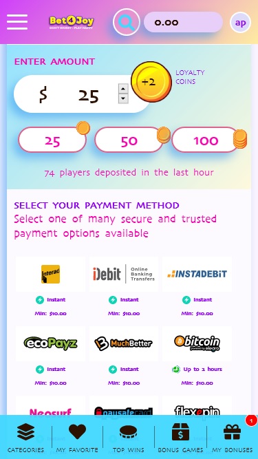 Bet4Joy 賭場由 Microgaming, Net Entertainment, BetSoft, 1x2gaming, Amatic Industries, Big Time Gaming, ELK Studios, Evolution Gaming, Ezugi, Habanero Systems, iSoftBet, Oryx, playson, Quickspin, Relax Gaming, Thunderkick, Yggdrasil, Endorphina, Wazdan, Betgames, Booming Games, Stakelogic, Pragmatic Play, Nolimit City, Felt Gaming, Red Tiger Gaming, Red Rake Gaming, Fantasma Games, SYNOT Games, Kalamba, Revolver Gaming, Skywind, Spinmatic, Spadegaming, BGAMING, Northern Lights Gaming, Electric Elephant Games, Pocket Games Soft, Bulletproof Games, Gluck Games, Gameburger Studios, Slot Factory, Spearhead Studios, Swintt, HungryBear Gaming, Blue Guru Games, Lady Luck Games, Games Global, Amusnet Interactive, Wizard Games, Blueprint Gaming, CT Interactive, GamesOS, Leander Games, Merkur Gaming, Pariplay, Push Gaming, Tom Horn Gaming, Gamomat, Reel Time Gaming, BF Games, Bally Wulff, Reflex Gaming, Storm Gaming Technology, Wild Streak Gaming, Golden Hero, STHLM Gaming, 4ThePlayer, Gamevy, NetGaming, ReelPlay, Japan Technicals Games, BB Games, Black Pudding Games, Hacksaw Gaming, Max Win Gaming, Bang Bang Games, Arcadem, SilverBack Gaming, Peter And Sons, Eurostar Studios, Aurum Signature Studios, Armadillo Studios and FlipLuck提供支持,其遊戲透過網頁平台提供,您可以直接透過賭場進行遊戲。此外,它還提供行動網站,方便您在智慧型手機和平板電腦上暢玩。Baccarat