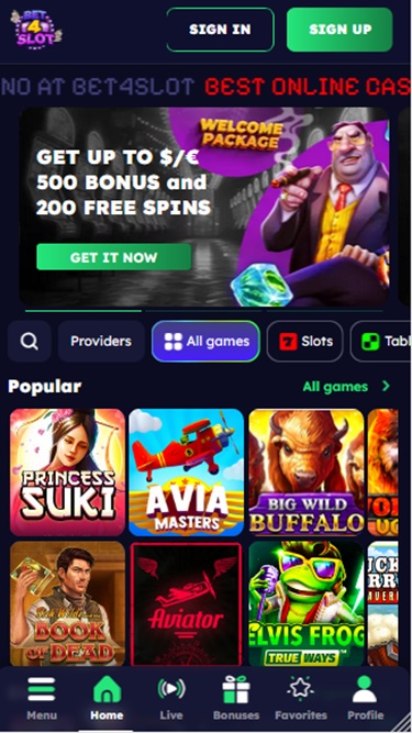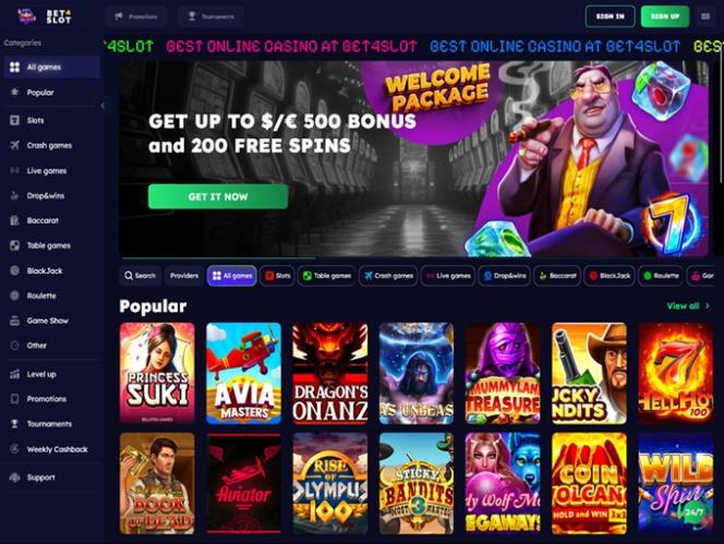 Bet4Slot 是一個線上賭場遊戲網站,致力於吸引加拿大玩家,為他們提供豐富的博彩遊戲選擇,包括真錢老虎機、真人荷官、桌上遊戲和速成遊戲。憑藉強大的推廣計劃和加密貨幣支持,難怪如此多的加拿大玩家選擇這個品牌。