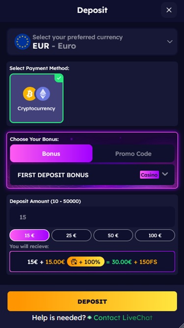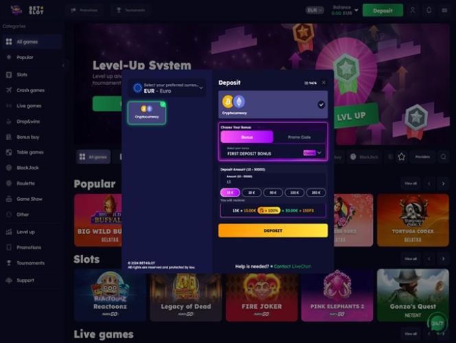 遊戲種類繁多是這個博彩網站的另一個主要優勢,玩家可以探索種類繁多的遊戲,包括真人荷官、線上老虎機、桌上遊戲和即時崩潰遊戲。品牌會定期擴充遊戲庫,因此您總能找到新鮮刺激的遊戲。